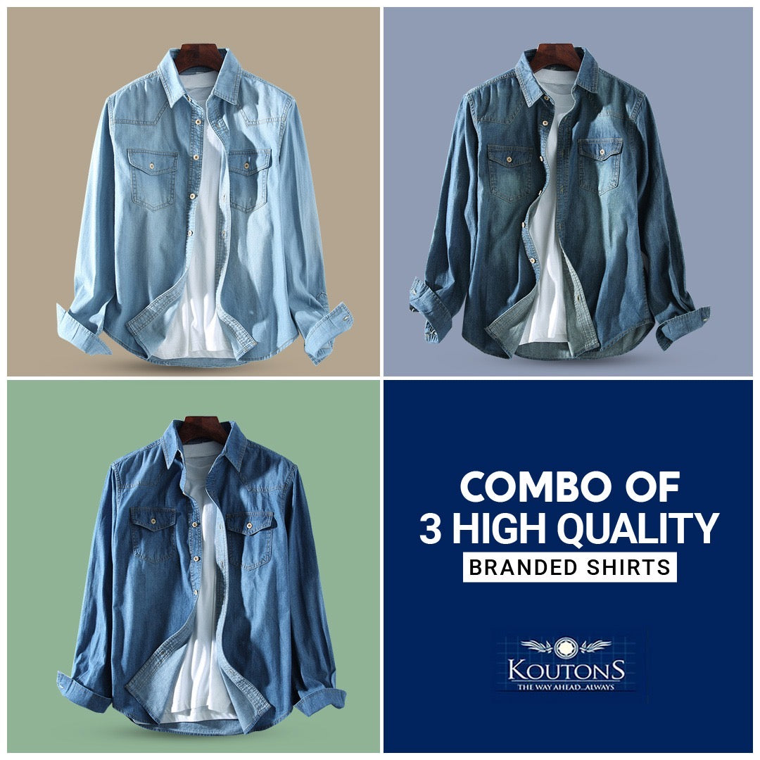 👕✨ Pack of 3 Branded Shirts – Premium quality, stylish fit & ultimate comfort 💯👌 Perfect for work, casual & party wear 🎉🕺 Upgrade your wardrobe in one go! 🛍️🔥